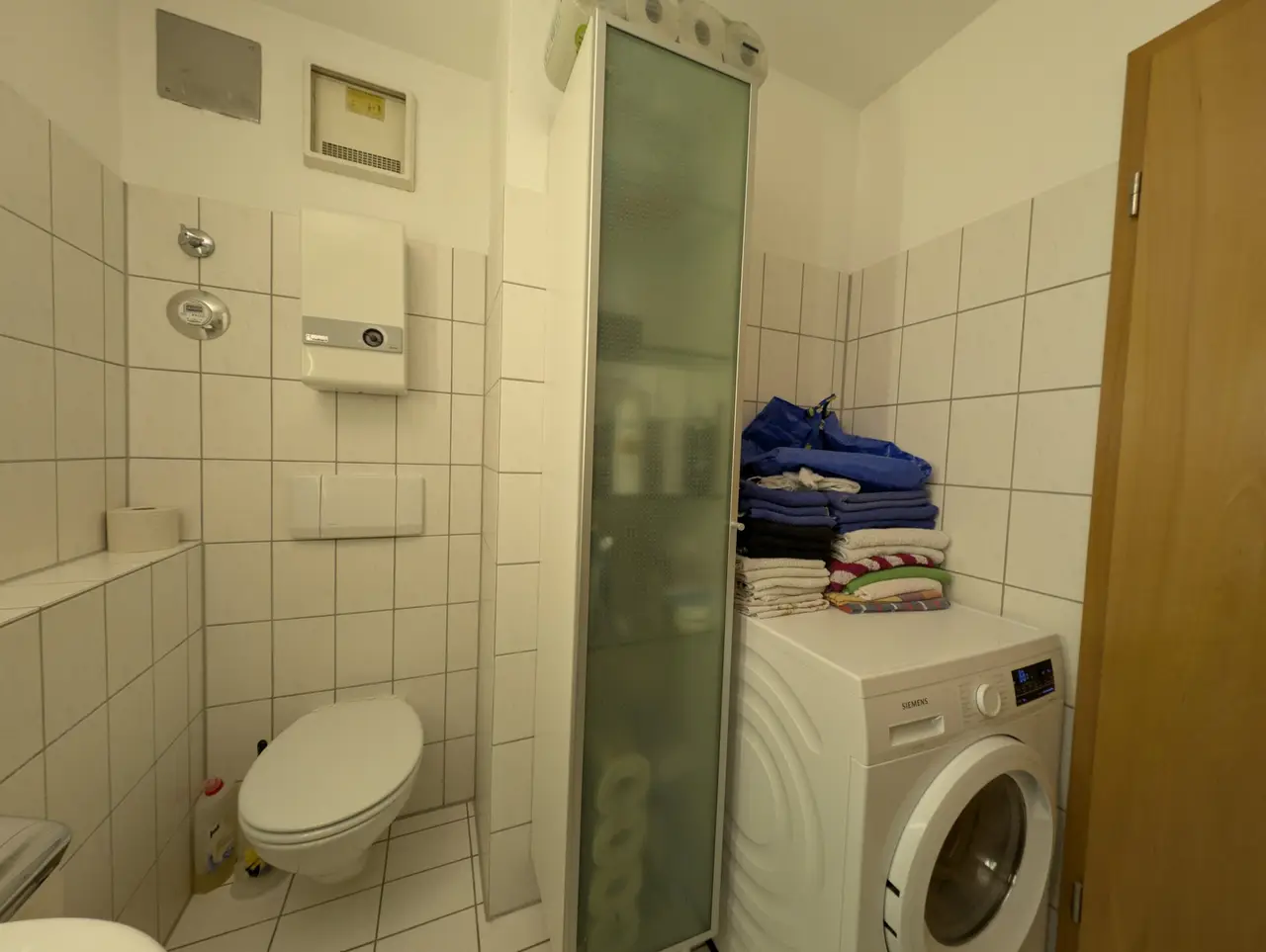 Die Wohnung ist vermietet. Das monatliche Hausgeld beträgt 190 €. Das Warmwasser wird mit einem Stromdurchlauferhitzer erzeugt.