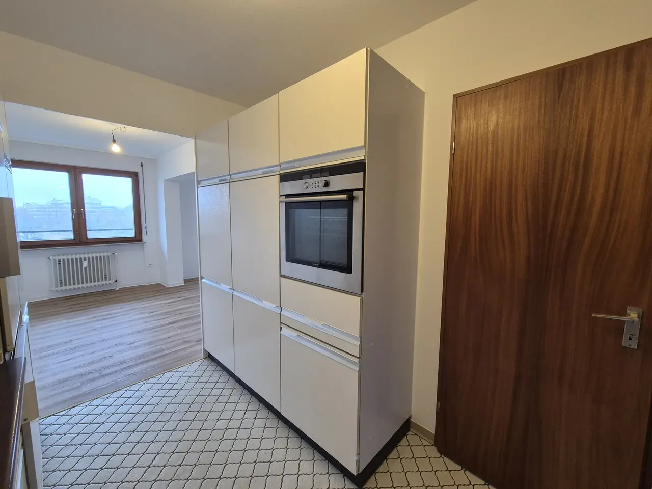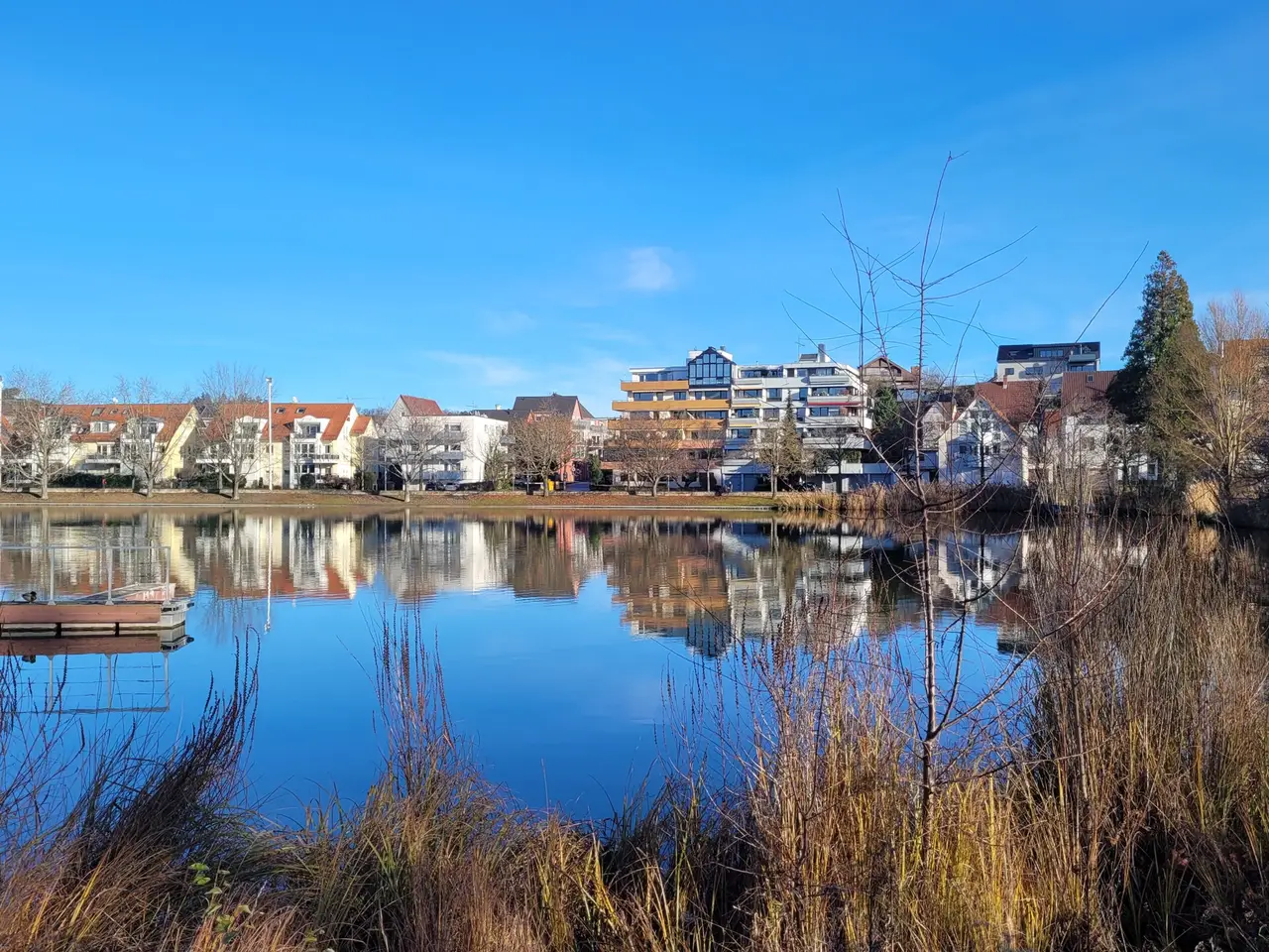 Das Wohnzimmer besticht durch seine freundliche Atmosphäre und bietet Zugang zur wunderbaren Terrasse, welche perfekt zum Entspannen oder für gesellige Stunden im Freien geeignet ist. Die L-förmige, überdachte Terrasse bietet eine wunderschöne Aussicht auf den oberen See und auf die Böblinger Altstadt. Die Küche mit der praktischen Einbauküche und der Essbereich sind so angelegt, dass sie den kommunikativen Mittelpunkt der Wohnung bilden.