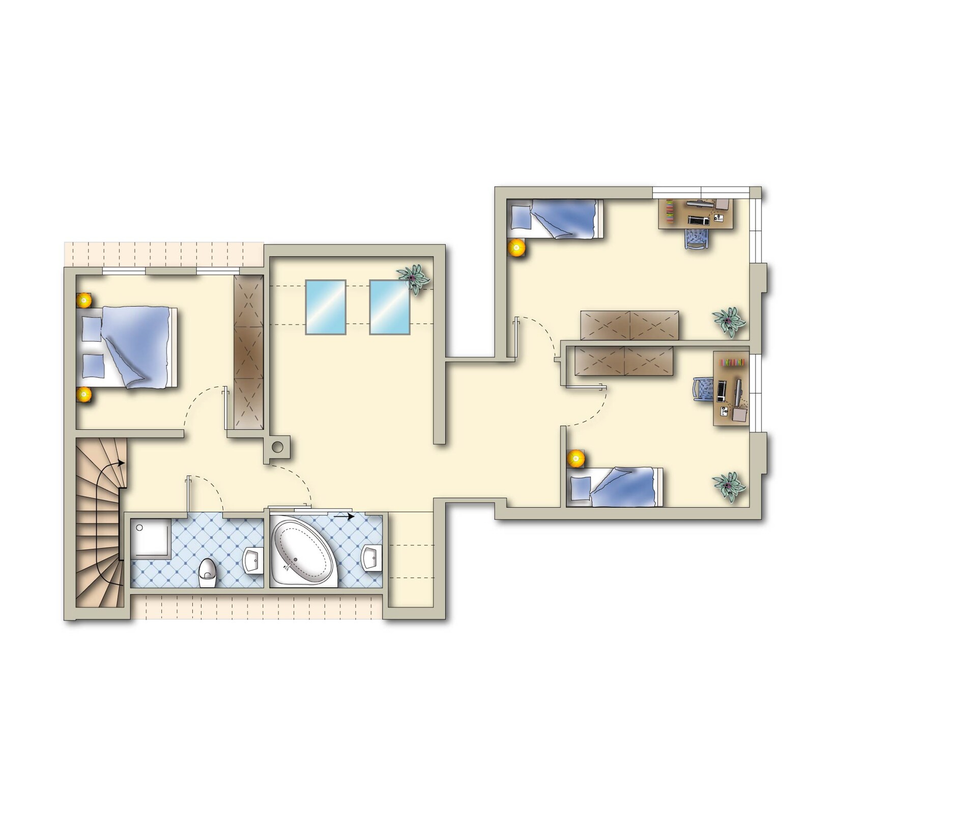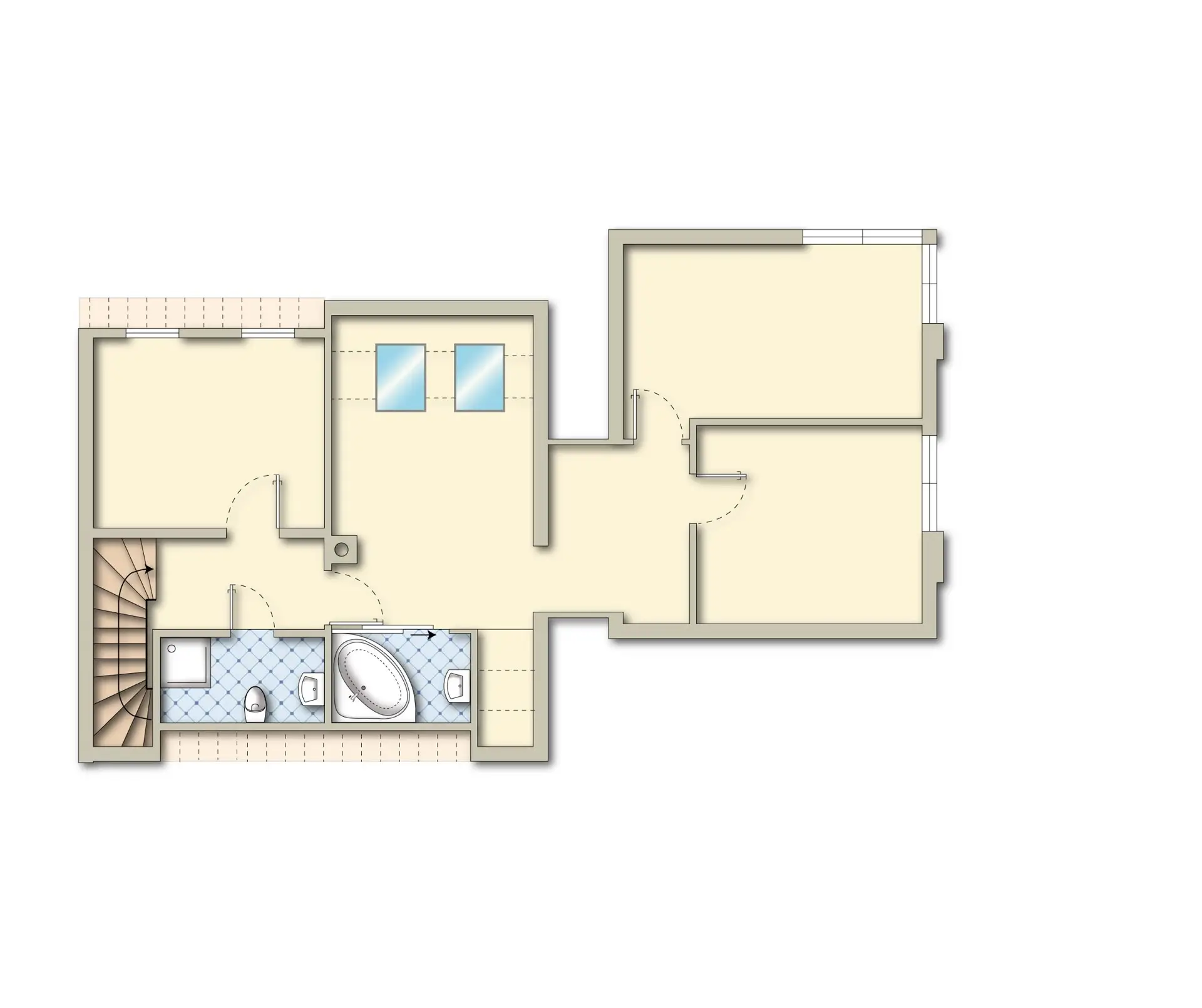 -Tageslichtbad mit Wanne+Dusche+WC im OG