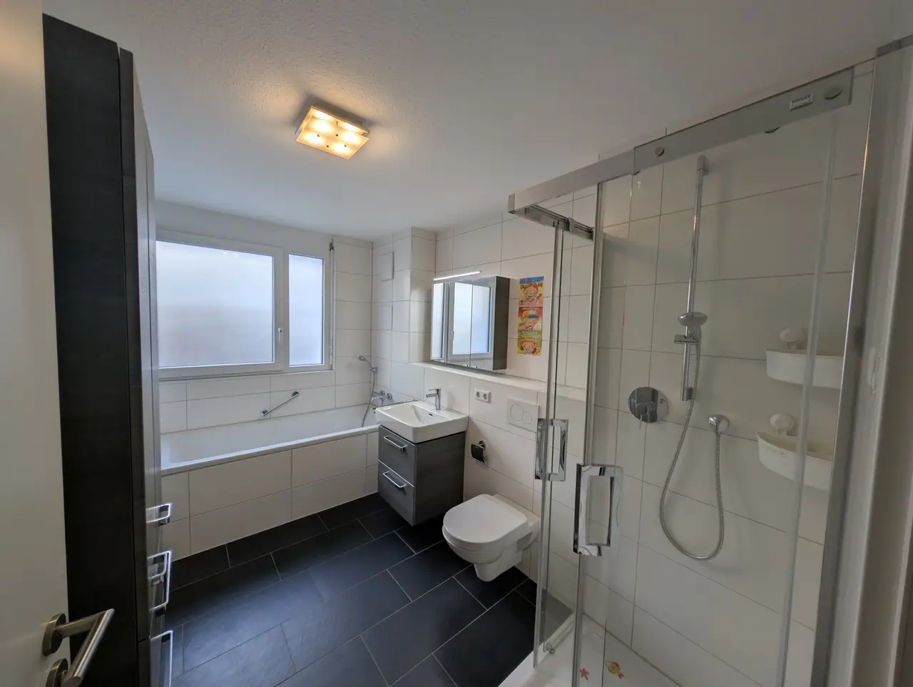 Die drei Schlafzimmer sind optimal für Familien geeignet oder bieten genügend Platz für ein Büro und ein Gästezimmer. Das stilvolle Badezimmer mit Tageslicht sorgt für helle und einladende Atmosphäre, zusätzlich steht Ihnen ein praktisches Gäste-WC mit Dusche zur Verfügung.