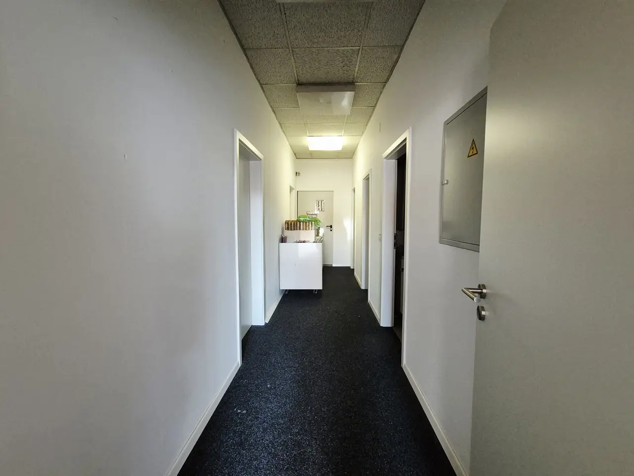 Zusätzlich verfügt die Gewerbefläche über eine vollausgestattete Küche sowie Sanitäranlagen. Ein separater Lagerraum bietet ausreichend Platz für Akten oder Materialien. Parkplätze stehen direkt vor dem Gebäude zur Verfügung, was die Erreichbarkeit für Mitarbeiter und Kunden erleichtert. Die Immobilie befindet sich in einer verkehrsgünstigen Lage mit guter Anbindung an öffentliche Verkehrsmittel und Autobahnen.