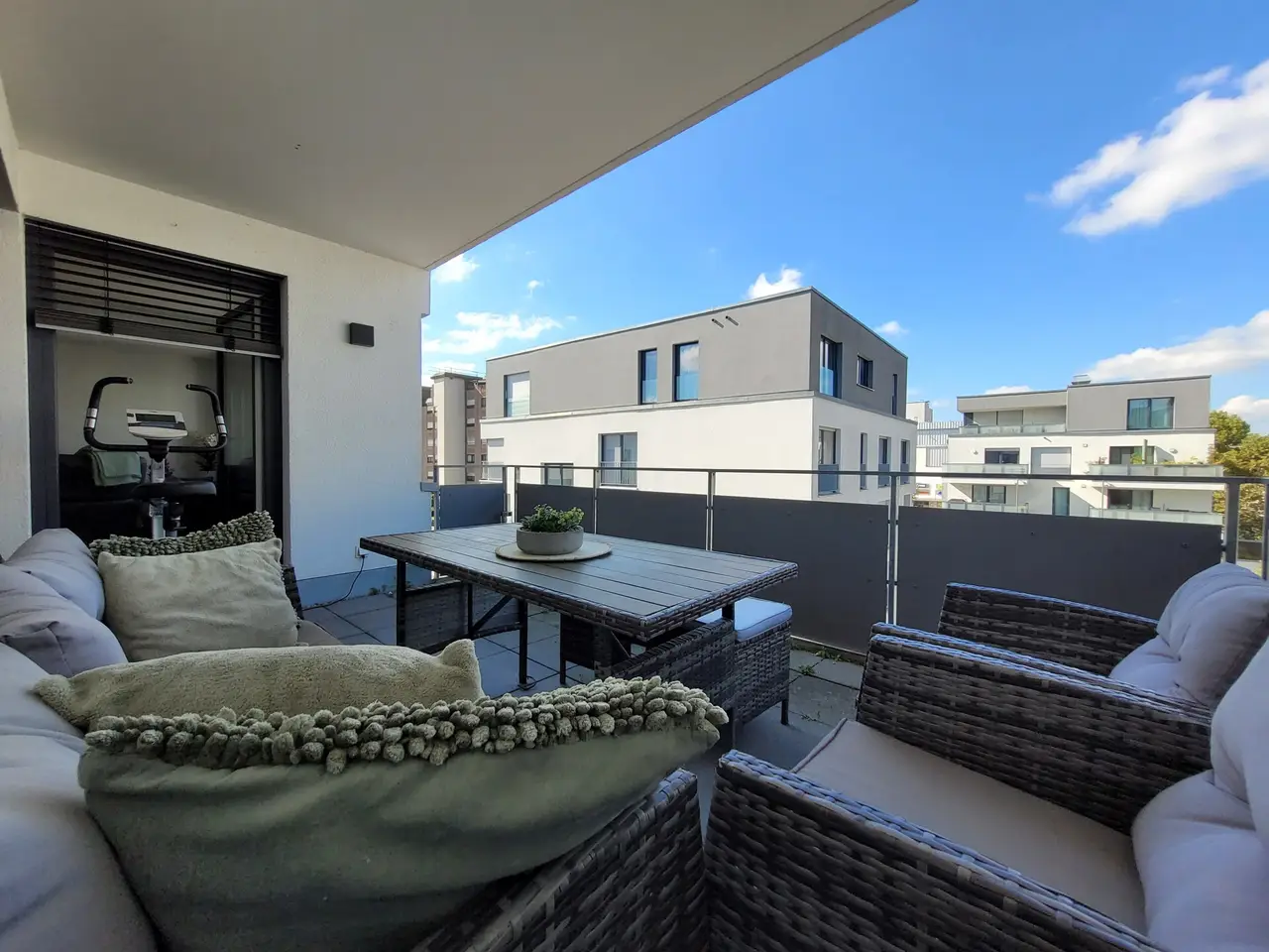 - Heller, überdachter Balkon, ideal zum Entspannen an der frischen Luft