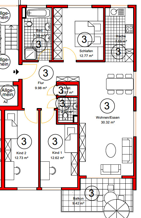 -4 Zimmer, ca. 101,23 m² Wohnfläche