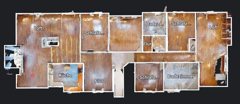 Schauen Sie sich unseren exklusiven 360-Grad-Rundgang an, blenden Sie bei Bedarf unten links im Rundgang das Linealsymbol für die genauen Bemaßungen ein.