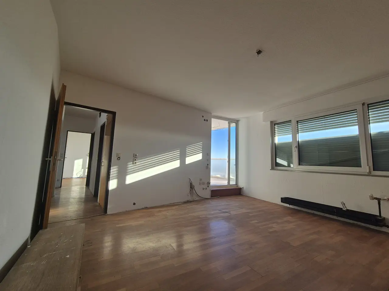 Das renovierungsbedürftige Penthaus bietet eine seltene Gelegenheit für Käufer, die großzügigen Wohnraum nach eigenen Vorstellungen gestalten möchten und alles, ausser Gewöhnlich bevorzugen. Insbesondere die extravagante Verglasung im geräumigen Wohnzimmer und die sehr großzügige Dachterrasse mit unverbaubaren Ausblick suchen seinesgleichen in dieser durchdacht geschnittenen Wohnung.